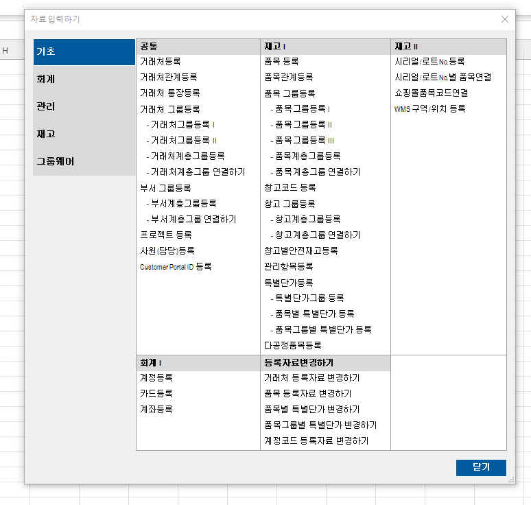 이카운트의 “자료 입력하기” 메뉴에서 바로 올리면 됩니다.